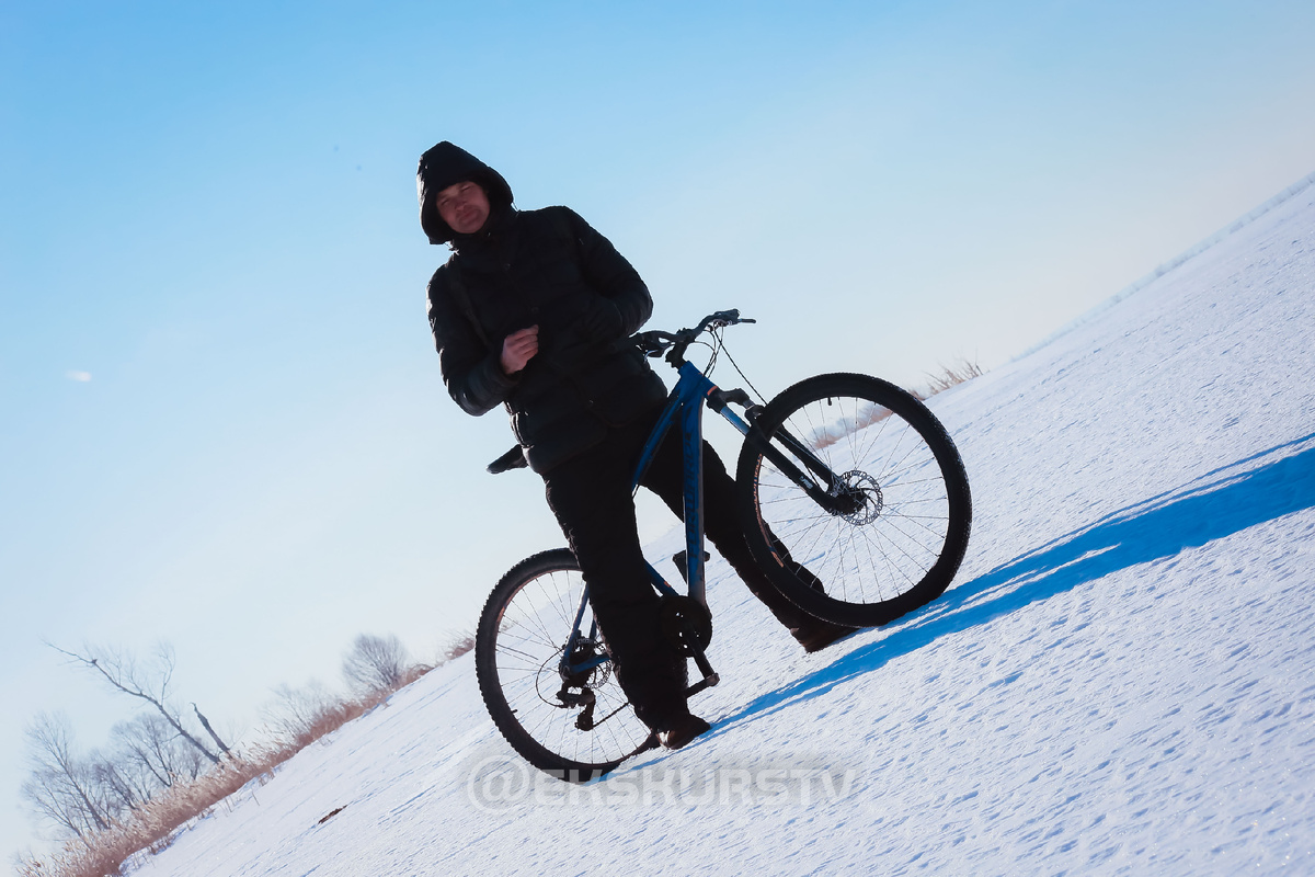 Да, я знаю, вы мне сейчас скажете, что сам дурак, сунулся туда на 35-й резине, да ещё и накачанной под асфальтовые дороги. Хотя бы спустил её! Но, во-первых, сработала “ошибка выжившего”. По опыту предыдущего похода, когда я вообще никуда не проваливался при том же давлении, я думал, что всё будет ок. Во-вторых, сколько ты её не спускай, а она тридцать пятой быть не перестанет. В-третьих, проваливались даже велосипеды с толстой внедорожной резиной, и только вел с реально широкими и спущенными покрышками сохранял способность передвигаться почти всю дорогу.
