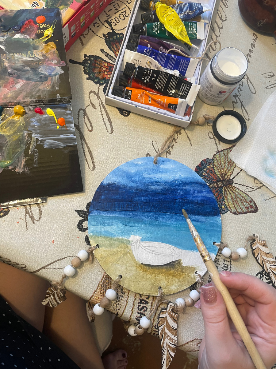В процессе написания ,картина заняла не долго времени примерно час )) Кактус 🌵 и фактура дерева отличное сочетание 🙌 Прогулявшийся в доль набережной и вдохновившейсь полналцнией можно вновь начинать работать