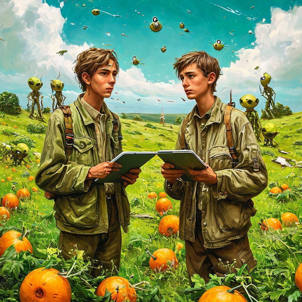 Космический корабль Никифора и Ануфрия приземлился на Вегете через два дня. Планета встретила их ярким солнцем, зелеными полями и... запахом. Запахом свежих овощей, который витал в воздухе, как навязчивый рекламный слоган. Никифор, всегда ценивший порядок и чистоту, слегка поморщился. Ануфрий, напротив, вдохнул полной грудью и улыбнулся.