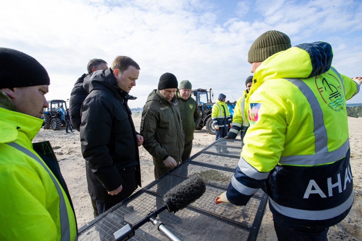 Вместе с первым вице-губернатором, руководителем оперштаба Игорем Галасем и мэром Анапы Василием Швец он провел совещание с проектными организациями и проинспектировал ход восстановительных работ на пляжах. К курортному сезону пострадавшие участки побережья будут приведены в нормативное состояние, а уже на будущий год на этих местах запланировано улучшение инженерного состояния. До середины февраля будет определен подрядчик, который выполнит необходимые изыскания и сделает проектно-сметную документацию. На пляже главе Минприроды продемонстрировали работы по защите береговой линии от повторных загрязнений – здесь оборудованы ров и насыпь с полипропиленовыми сетями, которые удерживают нефтепродукты. А также показали технику, которую планируют задействовать в трехэтапной очистке песка. Сначала специальные комбайны просеивают остаточные фрагменты мазута на глубине до 20 см, затем плантажный плуг производит рыхление грунта на глубине до 70 см. На финальном этапе происходит финишное просе