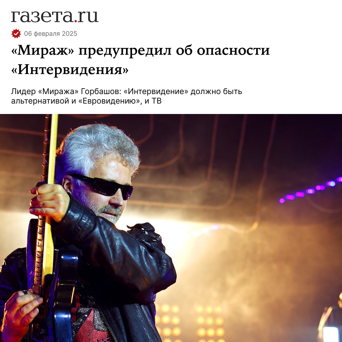 Лидер и музыкант группы «Мираж» Алексей Горбашов высказался о международном музыкальном конкурсе «Интервидение», который в 2025 году пройдет в России. В беседе с «http://Газетой.Ru» он отметил, что альтернативный масштабный конкурс в стране был бы сейчас актуален, однако есть опасность встретить на его сцене уже знакомых по эфиру ТВ артистов. «Самое главное, чтобы он не стал инструментом для продвижения «нужных» артистов, лица которых и без этого не сходят с экранов телевизора. Если «Интервидение» будет по-настоящему независимым, и станет альтернативой не только «Евровидению», но и тем конкурсам, которые идут бесконечным потоком на телеканалах, то я «за» обеими руками!» — сказал он. 3 февраля президент России Владимир Путин подписал указ о проведении «Интервидения» в сентябре 2025 года в Москве и Московской области. Председателем оргкомитета конкурса стал вице-премьер Дмитрий Чернышенко. Министр иностранных дел Российской Федерации Сергей Лавров рассказал, что конкурс предоставит возмо
