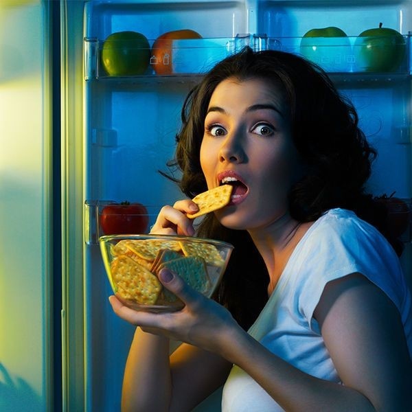 Порой ты без проблем днем соблюдаешь любые ограничения в питании, создаешь требуемый для снижения веса дефицит калорий, но как только на город опускается ночь, твой организм срочно желает опустошить весь холодильник, желает того, чего просто никогда не бывает в твоем холодильнике, а уснуть без этого просто невозможно. В результате все твои усилия по снижению веса летят в никуда, ведь переедание на ночь неизбежно ведет к набору веса. Есть ли выход из ситуации? Как утверждают диетологи, переедание на ночь это не только вопрос самоконтроля, а вопрос сложных биохимических процессов в организме. Как ни странно. Это связано с ритмом твоей жизни, уровнем стресса, качеством сна и множеством других факторов. Итак, если в течении дня ты питаешься нерегулярно, в твоем рационе не хватает белка и клетчатки, то к ночи ты будешь испытывать голод. Выход есть - полноценно завтракать и соблюдать баланс белков, жиров и углеводов, чтобы не допускать скачков сахара в крови. Вторым фактором является стр