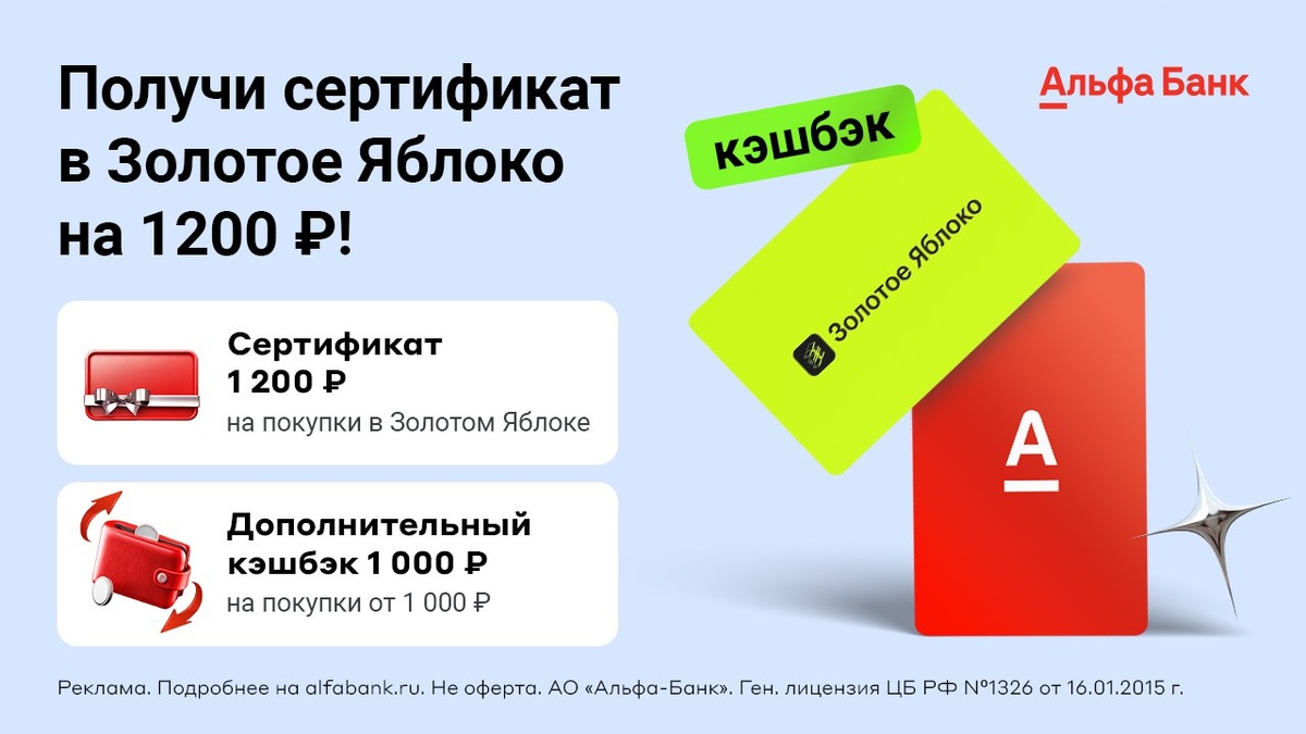 После оформления дебетовой карты Альфа-Банка по блогерской ссылке до 30.04.25 и покупок на 1000 ₽ получите: 🎁 Кэшбэк от Банка 1000₽ (выплатят до 10 числа следующего месяца) + сертификат Золотое Яблоко на 1200₽ от партнёра банка в течение 60 дней. Участвовать с 14 лет могут те, у кого минимум 90 дней нет дебетовых карт в Альфа-Банке. Сертификат придёт по смс в течение 60 дней, организатор акции - sertificate@rafinad.io 👉 Условия акции ☑️ ФИНХАКЕР.РУ также доступен в: Телеграм | ВКонтакте