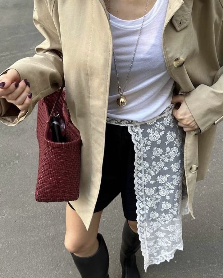 Тренд на рукоделие набирает обороты. В прошлом году регулярно говорили про вязаные вещицы и сам процесс, а теперь обращаем больше внимание на кружево. Инфлюенсеры активно включают в образы платки, пелерины, чепчики. Контрастное сочетание с темными и/или большими куртками, пальто, жакетами – в самое сердце.
