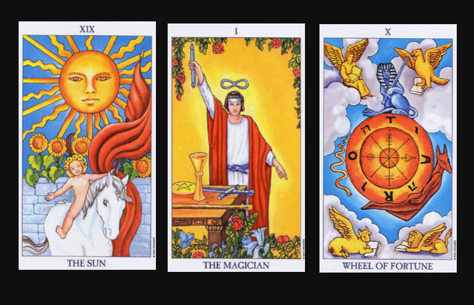 Выкладываем три карты и, анализируя каждую в отдельности, пытаемся сложить все три в одну картинку.