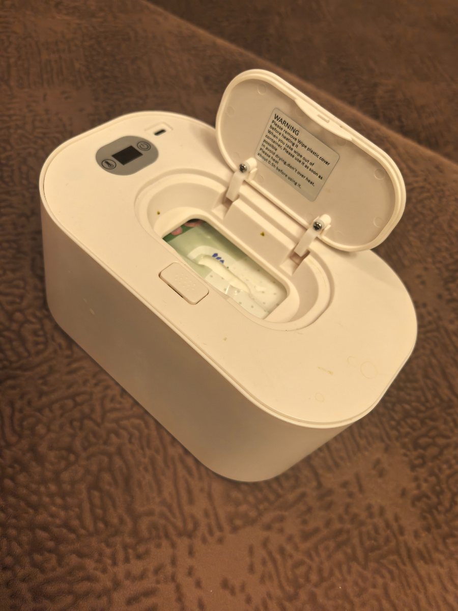 Честно говоря, я была уверена, что это очень полезная штука, поскольку влажные салфетки, когда их достаешь из упаковки, всегда холодные, потому и решила взять такой гаджет. Первое время он был очень полезен, но потом у нас пошло раздражение на попе и от салфеток мы отказались, поэтому нам этот подогреватель теперь неактуален. В целом, штука классная, реально подогревает, есть даже регулировка температуры от 45 до 60 градусов - запихнул пачку салфеток, нажал кнопку, подождал пару минут и салфетки теплые.