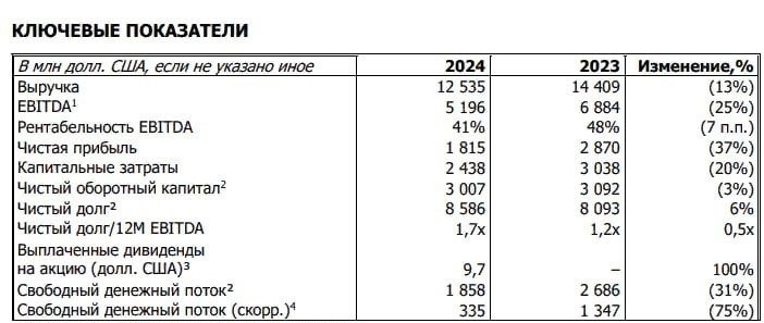 2025: план 215 млрд руб — фокус на горные проекты и экологию. - Чистый долг: 917,7 млрд руб (+6% за год). Соотношение долг/EBITDA = 1,7x (безопасный уровень).