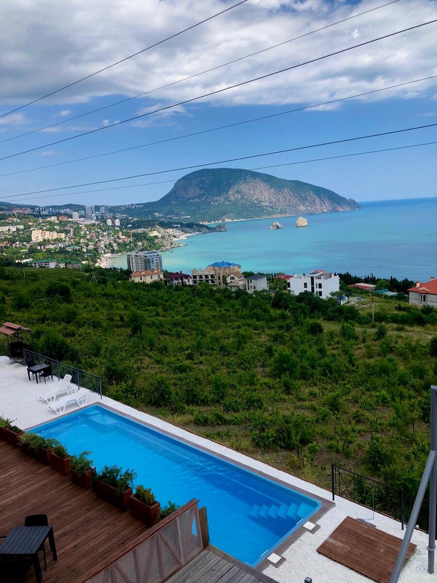 Он достигает двенадцати метров в длину. Из бассейна открывается захватывающий вид на весь Гурзуф, море, Аю-Даг (гору Медведь) и Адалары. На территории есть терраса с мебелью, зона отдыха с шезлонгами и подвесными креслами, а также зона барбекю. И, конечно, огромные качели, как на крымском Санторини! Знакомство с отелем «Сомелье» начинается с этой статьи: Хочу отметить, что в наше время наличие высокоскоростного Wi-Fi-интернета в отеле является важным преимуществом. Он доступен на всей территории! Пожалуй, единственным минусом можно назвать довольно дальнюю дорогу до моря. Пешком путь займёт около 20 минут, если идти с горки.