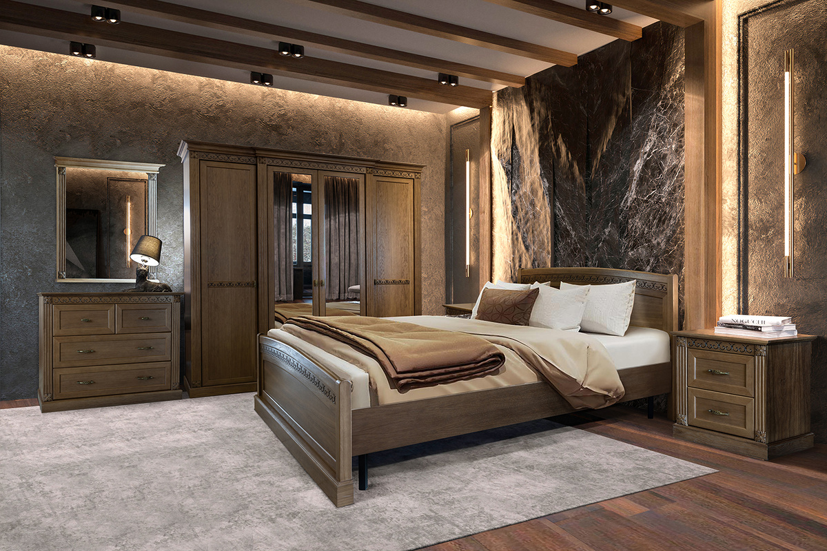 Спальня — это пространство, где человек отдыхает, набирается сил и проводит самые спокойные моменты своей жизни. Важно, чтобы обстановка здесь способствовала гармонии, комфорту и расслаблению. Коллекция «Ярослава» от Пинскдрев — это сочетание традиционной классики, натурального дерева и высокого качества исполнения.
