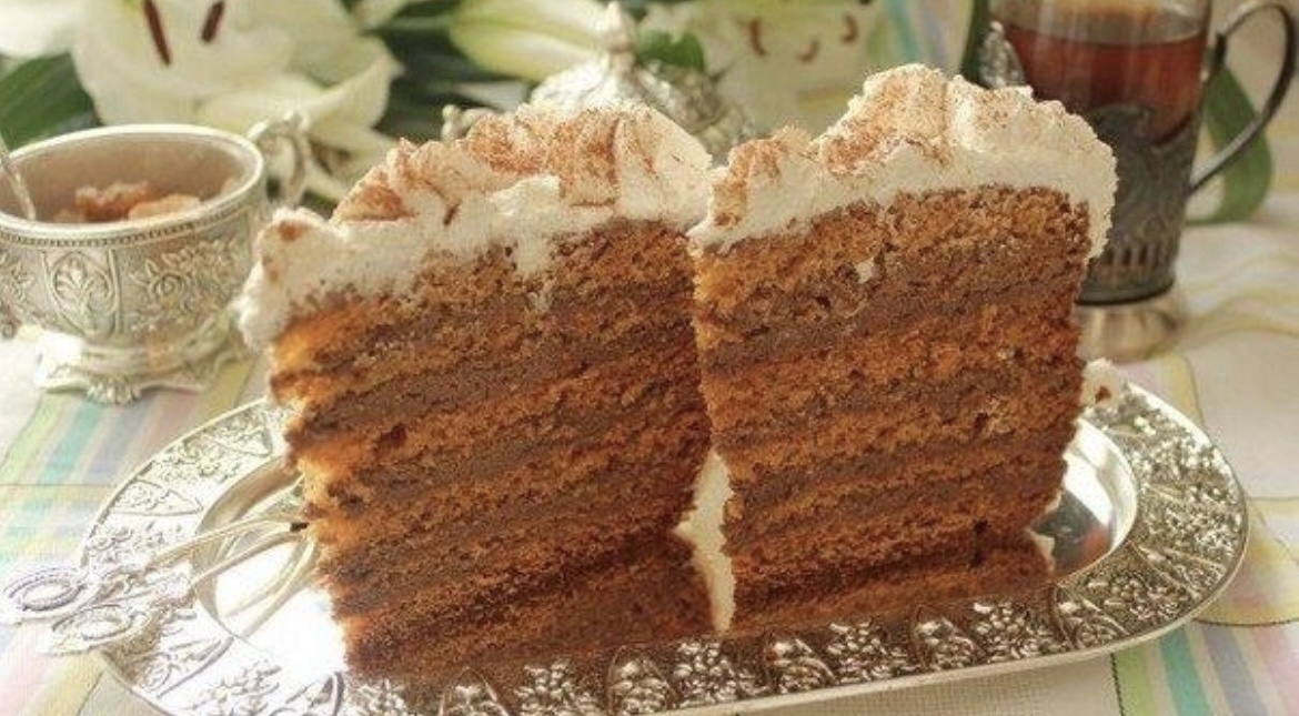 Этот торт получится даже у тех, у кого никогда и ничего не получается. Пышный и нежный бисквит с восхитительным ароматом душистого меда в сочетании с шоколадным кремом из сгущенного молока – что еще нужно для счастья?! Ингредиенты: Торт: 350 г муки щепотка соли 1 ч.л. разрыхлителя щепотка корицы 5 яиц 140 г сахара 5 ст.л. меда сливочное масло – для смазывания формы Крем: 250 г сливочного масла комнатной температуры 0,5 банки вареного сгущенного молока 1 банка сгущенного какао Украшение: 200 мл сливок 38% 2 ст.л. сахара 1 ч.л. какао-порошка Приготовление: 1. Для торта муку просеять в миску, добавить соль и разрыхлитель, корицу. 2. Яйца взбить с сахаром до получения пышной светлой массы. Добавить мед, взбить. Не переставая взбивать, добавлять в несколько приемов муку. 3. Смазать чашу мультиварки маслом и переложить в нее тесто. Выпекать в режиме «Выпечка» 1 час 30 минут. (Ориентируйтесь на вашу модель мультиварки, вполне вероятно, вам понадобится чуть меньше или чуть больше времен