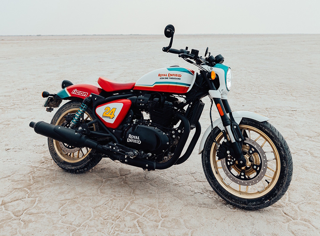 Фотогалерея Royal Enfield Shotgun 650 Icon Edition: Автор: Степан Берестов WWW.IN-MOTO.RU Royal Enfield и Icon представляют ограниченную серию мотоцикла Shotgun 650 — всего 100 экземпляров в мире Компания Royal Enfield объединила усилия с американским брендом Icon, чтобы создать ограниченную серию мотоцикла Shotgun 650. Продажи стартуют 12 февраля 2025 года в рамках эксклюзивного онлайн-релиза. Стоимость модели в Европе составит около 8900 евро, но получит европейский рынок лишь 25 мотоциклов из 100 выпущенных. Дизайн мотоцикла вдохновлён кастомной моделью Icon «Always Something», представленной на выставке Eicma в 2024 году. Серийная версия получила трёхцветную окраску в гоночном стиле, золотистые диски, синие пружины задних амортизаторов, красное сиденье с логотипом RE и зеркала на законцовках руля. Кроме того, каждый покупатель ограниченной серии получит в комплекте дизайнерскую мотокуртку Slabtwon Intercept RE от Icon. Адриан Селлерс, глава отдела кастомных проектов и мотоспорта Ro