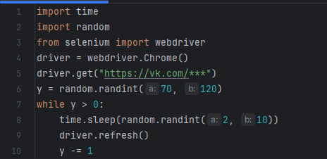 Будем имитировать просмотры веб-страницы. Так как, на многих сайтах стоит защита от кибератак, нам нужно генерировать трафик так, чтобы он был неравномерным. Не вызывать одну и ту же страницу каждую секунду, тем более с одного IP-адреса.