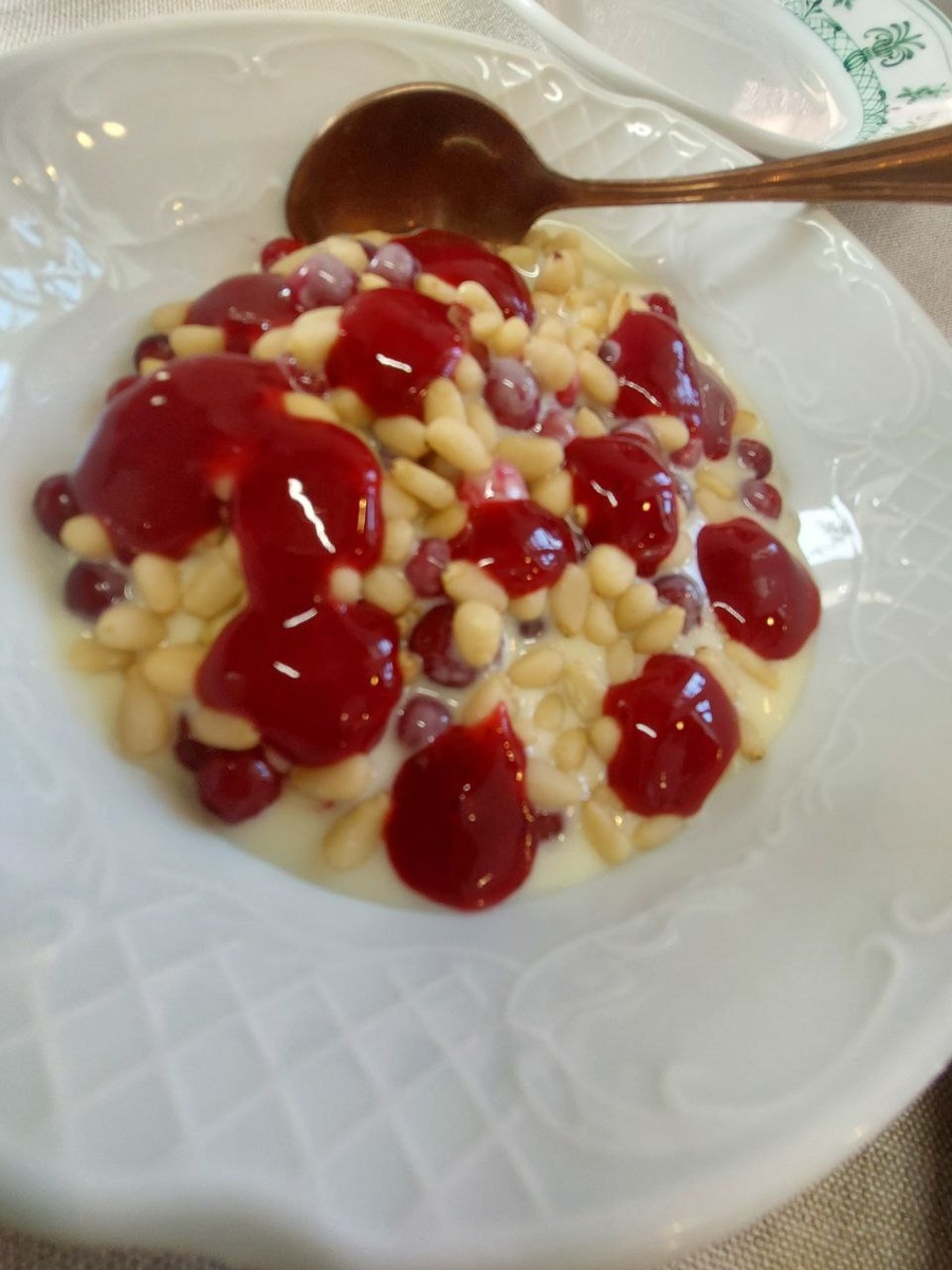 По немногочисленным просьбам не восторженных почитателей рецепт десерта "Сибирский", как в Тобольском ресторане "Межа́" И так, Вам, дабы восхитить Её понадобится чуть чуть терпения и....фантазии Хвойный лес, там где белый мох и ветер шумит в макушках сосен, кедров и пихт .... Комбайн и большая чашка или ведро Колотушка и мешок Сельпо или какой нибудь другой магазин где есть хорошая сгущенка Итак, приступаем: 1. Ранним ранним утром, пока лучик солнца ещё не перевалили через мохнатые кроны, нужно натянуть резиновые сапожки и накомарник на бошки ...ибо самый кусучий зверь в тайге это мошка! Находим в лесу брусничник и собираем ягоды, ЗАМОРАЖИВАЕМ! 2. Вооружившись колотушкой или дождавшись сильного ветра собираем в кедровнике шишки, ловим белку и заставляем грызть орешки! 3. Покупаем в сельпе самую вкусную сгущёнку. В железной, обязательно банке - мы за традиции! И наконец самое главное!!!