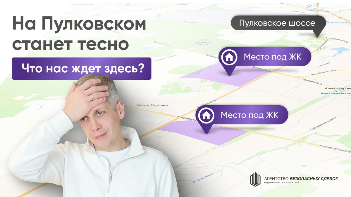 Пулковское шоссе — самый популярный район для застройщиков на ближайшие 10 лет Если проедетесь по Пулковскому шоссе, увидите одно — сплошные поля. Километры свободной земли. Тишина. Никаких пробок. Вот только так будет недолго. Все близлежащие к городу участки уже освоены, и застройщики уходят вглубь. А Пулковка — это именно то направление, где "поле не пахано" в прямом смысле слова. И сейчас его начинают пахать по-крупному. Кто уже скупил землю на Пулковском Не так давно краснодарский застройщик Dogma купил участок площадью 258 гектаров. Это огромная территория — примерно 260 футбольных полей. Чуть дальше землёй владеет застройщик из Чебоксар (компания "Отделфинстрой"). А между ними — поля. Несложно догадаться, что там скоро будет. Правильно, новостройки. Десятки жилых комплексов. Десятки тысяч квартир. Десятки тысяч машин. Главный вопрос — а дороги-то потянут? Сейчас на Пулковке нет больших пробок. Ехать можно спокойно. Но представьте, что произойдёт, когда туда заселятся жители из
