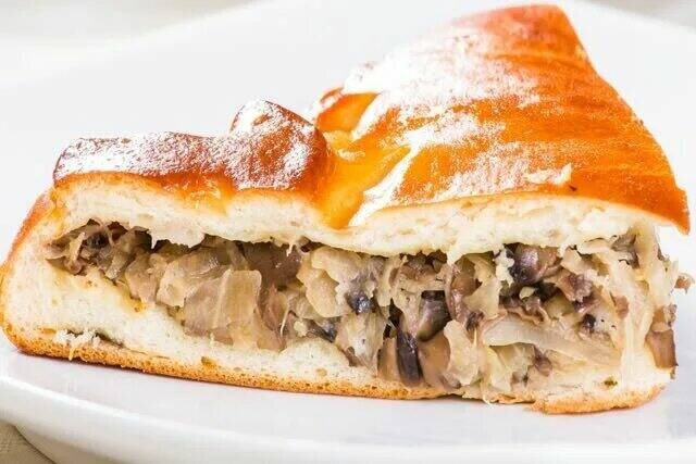 Для приготовления домашнего пирога нам понадобятся следующие ингредиенты. Тесто:сухие активные дрожжи «САФ-ЛЕВЮР» - 2 ч. л. молоко - 100 мл сахар - 75 г яйца куриные - 3 шт .пшеничная мука - 400 г сливочное масло - 40 г Начинка лук репчатый - 1 шт. грибы - 250 г капуста белокочанная - 350 г оливковое масло - 2 ст. л. соль по вкусу перец по вкусу яйца куриные - 1 шт .Приготовьте опару. Смешайте теплое молоко, сахар, немного муки и сухие активные дрожжи «САФ-ЛЕВЮР». Оставьте на 15 минут.Добавьте куриные яйца, растопленное сливочное масло. Замесите тесто, обомните и поставьте в теплое место на 2 часа. Добавьте куриные яйца, растопленное сливочное масло. Замесите тесто, обомните и поставьте в теплое место на 2 часа. Обжарьте на оливковом масле лук и капусту, добавьте грибы и специи по вкусу. Тушите до готовности, потом остудите .Готовое тесто разделите на 2 части. Одну тонко раскатайте и выложите на застеленный пекарской бумагой противень. Сверху на тесто выложите ровным слоем начинку.На