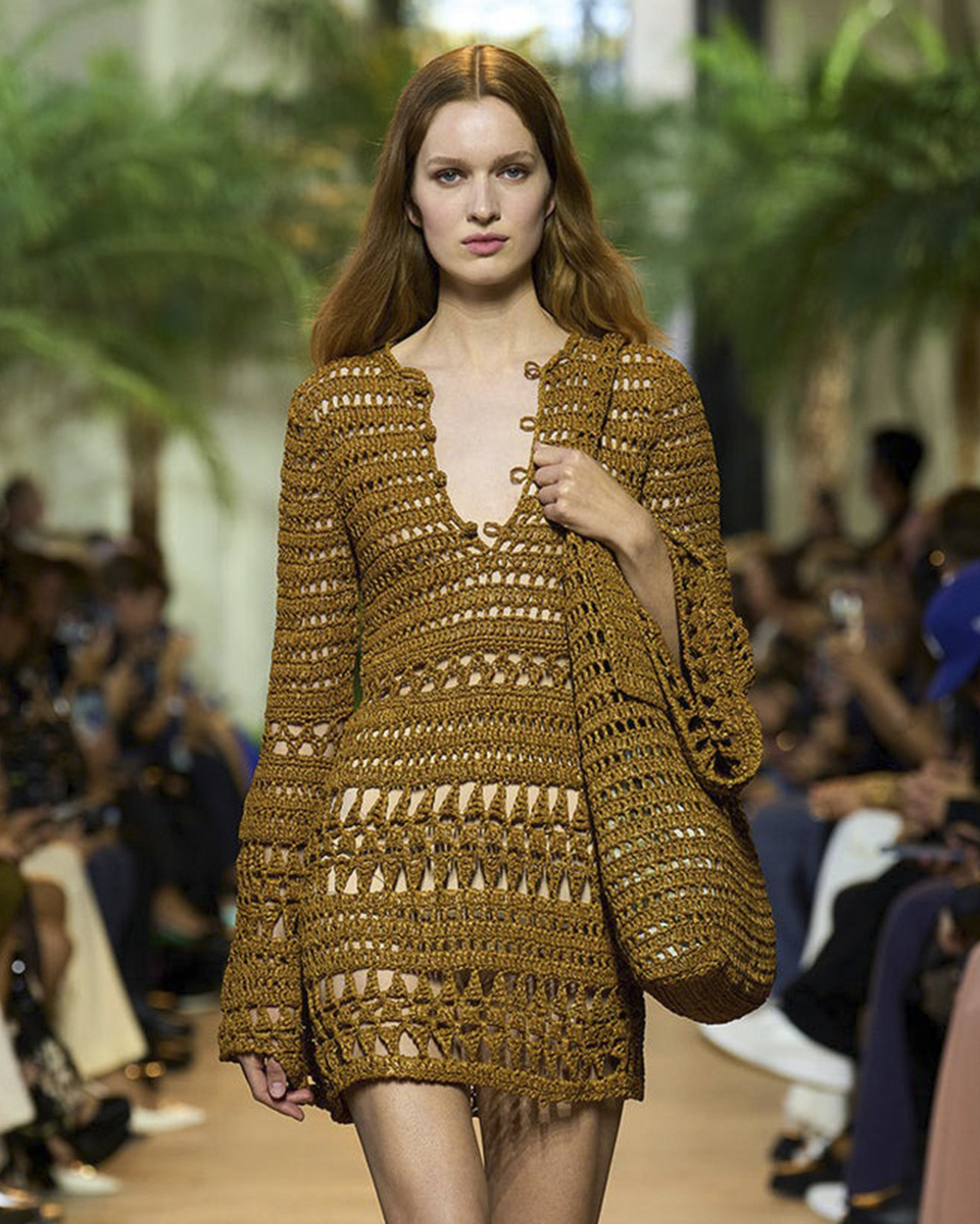 Многие знаю, что схемы для курса сложных раппортных узоров я подбирала не один год, искала что-то интересное и все складывала в папку. Именно тогда, встретила схему зубчатого пико. Хотела разобрать его отдельно, но посчитала, что узор простоват для опытных вязальщиц, хотя и достаточно эффектный. И что я вижу? Именитый бренд Elie Saab в сочетании с достаточно простым узором использует небольшие треугольники в полотне. Вот оно, то самое зубчатое пико. Хочу отметить, что бренд предлагает много изделий крючком. Сегодня поговорим именно про модели из рафии, а в следующий раз покажу еще и сетки с ирландскими элементами.
