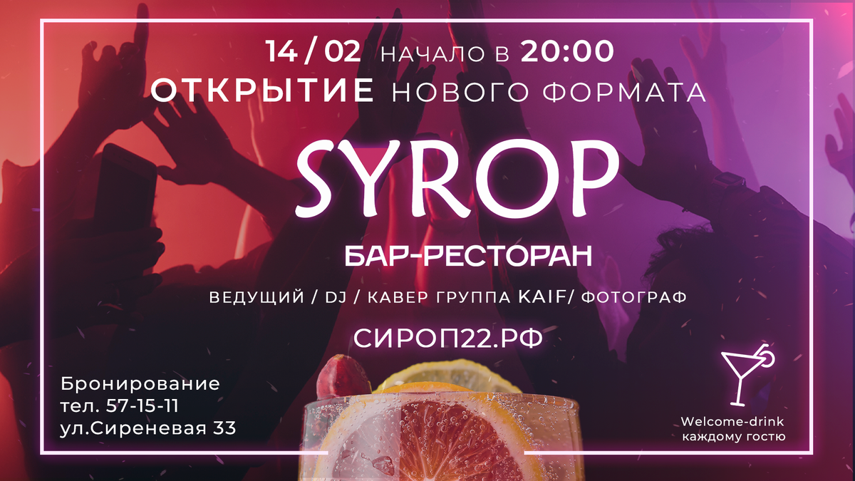В День святого Валентина в Барнауле откроется новый бар-ресторан SYROP