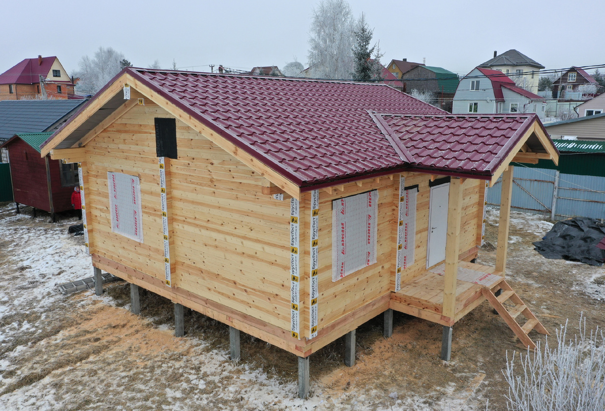 Практически за пару недель бригада строителей возвела домокомплект, провела кровельные работы, смонтировала обсадные коробки.