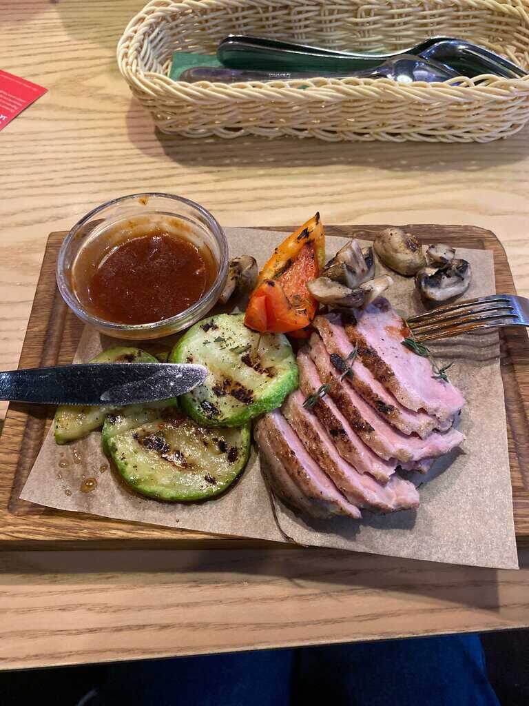 Сейчас вам расскажу как приготовить сочную, вкусную утиную грудку идеальной прожарки medium. Для гарнира подойдут овощи гриль: Цукини, баклажан, болгарский перец, шампиньоны Цукини и баклажан нарезать кольцами, перец на треугольники, небольшие шампиньоны режем пополам Маринуем овощи: Соль, перец, прованские травы, оливковое масло И обжариваем до готовности на сковородке или на гриле Ингридиенты для утки : •Свежий розморин или тимьян •Утиная грудка с кожей •Соль/перец/сухой чеснок 1. Подготавливает мясо •Сырую грудку, делим на 2-3 части •Обвалакиваем в перце, сухом чесноке, и соли •Закрываем в кусочки в вакуумном пакете или плотно заворачиваем в пищевую пленку с розморином и/или тимьяном 2. Разогреваем су-вид до 57°С 3. Кладем запечатуную утку в су-вид на 1.5ч. 3. Достать утку и остудить, можно в холодной воде 4. Готовую заготовку можно хранить в холодильнике 24ч 5. Обжаривать утку на раскаленной сковороде или гриле, без добавления масла(под кожей достаточно собственного жи