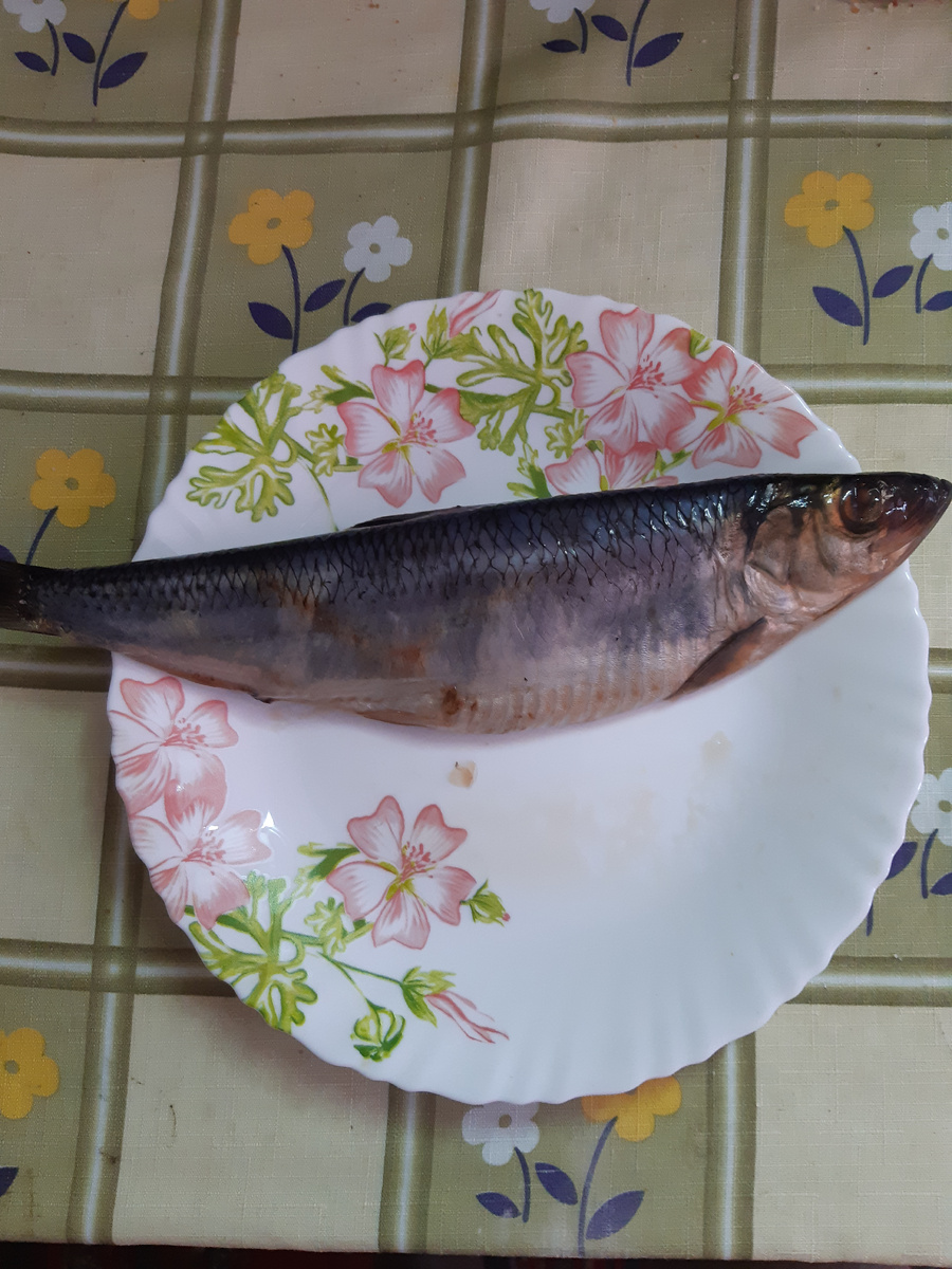 Свекровь привезла селёдку. До неё так и не добрались. Долго хранить тоже нельзя. Пришлось варить к ней картошку. Решила, раз такое дело, покажу как я чищу селёдку. Во-первых, нож в этом деле не нужен. Почему? Нож режет кости на более мелкие части. В результате, если длинную кость ты чувствуешь, то о короткой узнаёшь только когда она в десну воткнётся ( стоматиты у пожилых людей при внимательном осмотре иногда имеют в своей причине инородные тела - кость, шелуху от семечек и пр - это уже по опыту работы в поликлинике со стоматологами). Или короткая кость, отрезанная ( наискосок острым ножом-особенно) может воткнуться в горло.Попробуй достань её потом. В прошлом году, кстати, свекровь так подавилась. Не помню уже что за рыба у неё была, но возили её в Республиканскую больницу на ФГДС. Кость так и не нашли тогда. Ладно. Берём уже, наконец, селёдку. Сначала пальцами аккуратно проводим вдоль верхнего плавника по направлению к хвосту и снимаем шкуру ( всё только руками, ничего н