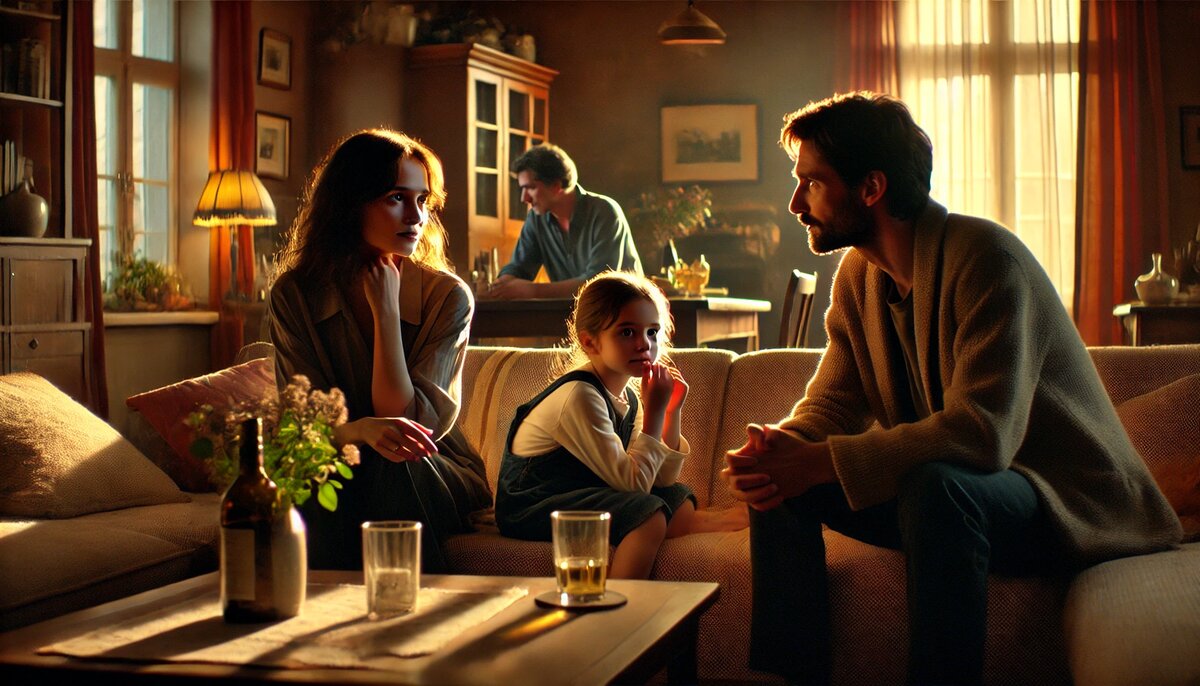 Все за столом замерли от неожиданности. Татьяна подбежала к дочери и ахнула, увидев, что её ребёнок вступил в серьёзную беседу.