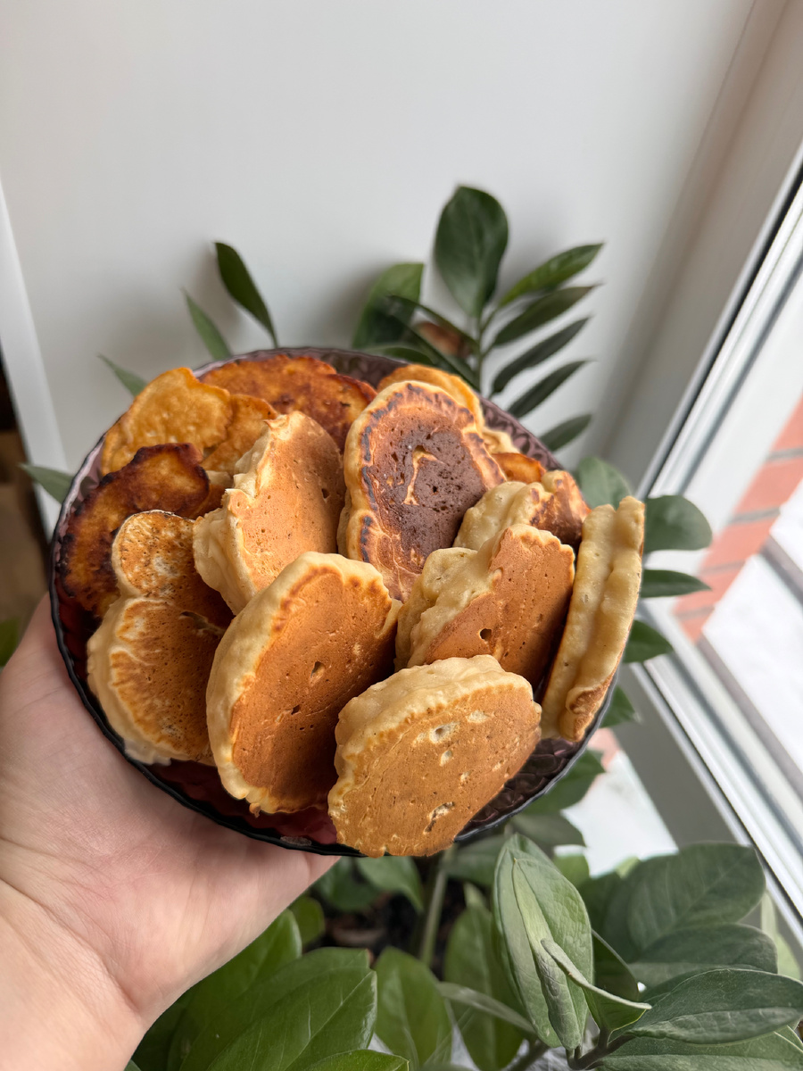 Добрый вечер и мы продолжаем наш эксперимент о том, хватит ли нам 500₽ на продукты на неделю что бы выжить? Можно сказать мы уже на середине пути, у нас уже четвертый день. Если кто-то новенький то напомню, мы участвуем вдвоем, я и муж.☺️ Завтрак.🌤️ Так как из-за минимального набора продуктов особо не разгуляешься, я сделала оладьи. Да это опять что-то мучное, опять выпечка…но это лучше чем ничего, да и само блюдо все равно новое, таких оладьев за эти четыре дня еще не было. Оладьи кстати я делала на воде. Главный секрет их приготовления, хорошая и антипригарная сковорода. Без масла к ней ничего не прилипло! 👍 Ингредиенты: Все смешала до нужной густоты и жарила на сковороде. Получились такие симпатичные оладушки и было их 11 шт.😉 Обед. 🥘 На обед был все тот же суп, но еще раз выложу его фото, что бы напомнить. А еще я делала десерт, правда с утра, но решила написать сейчас.🫣 Я растопила сахар с водой и сделала карамельки ( ну конфетки). Залила пластом и разломала. Вкус как у пет