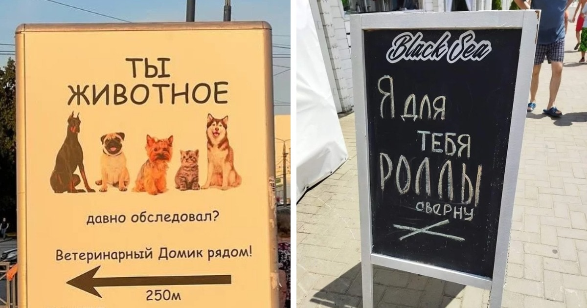 Долой скучные вывески и банальные названия! Что интересного в автосервисе «Автосервис» или в булочной «Булочная»? Никакой оригинальности! Но сегодня мы собрали для вас примеры божественного маркетинга, который находится где-то на грани гениальности и безумия. Такие шедевры уж точно не останутся незамеченными. Убедитесь сами! Это не первый салон с таким названием, есть ещё вариант с русскими буквами. Вы можете найти его и другие забавные вывески в этой подборке. Где справедливость? Почему для инопланетян алоэ ускоряет телепортацию, а для землян это просто витамины( А здесь вы можете найти ещё одну подборку забавных маркетинговых решений.