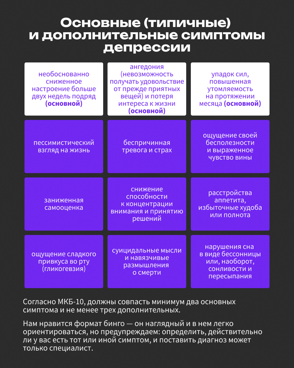 Основные (типичные) и дополнительные симптомы депрессии