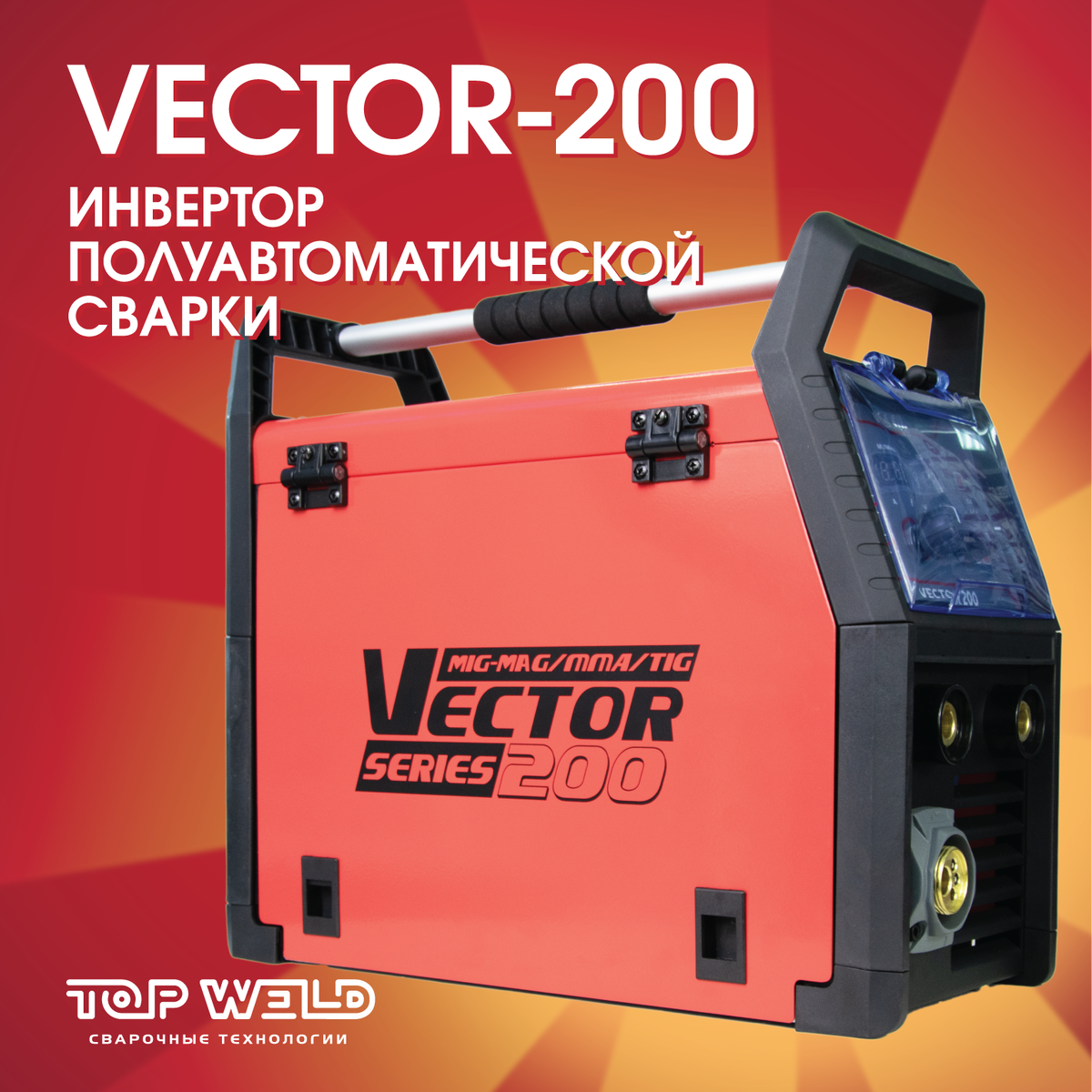 TW VECTOR 200 – современный однофазный аппарат для полуавтоматической сварки в среде защитных газов (MIG/MAG), сварки порошковой самозащитной проволокой (FCAW), ручной дуговой сварки покрытым электродом (ММА) и аргонодуговой сварки (TIG).