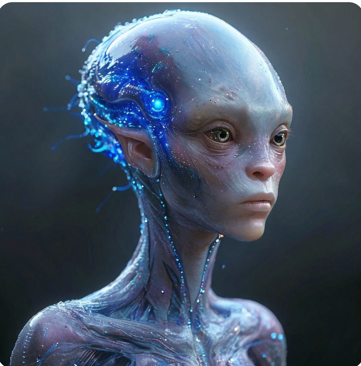 Я и моя родственная душа были существами гуманоидного типа с вытянутыми конечностями, с полупрозрачной нежной серебристой голубовато-сиреневой кожей, искрящейся и переливающейся. Голова была немного вытянутой с огромными глубокими и умными глазами. Тела были бесполые. Этот мир имел материальность, но гораздо менее плотную, чем наша теперешняя. Материя там была довольно пластична и податлива сознанию душ, её одухотворявших.