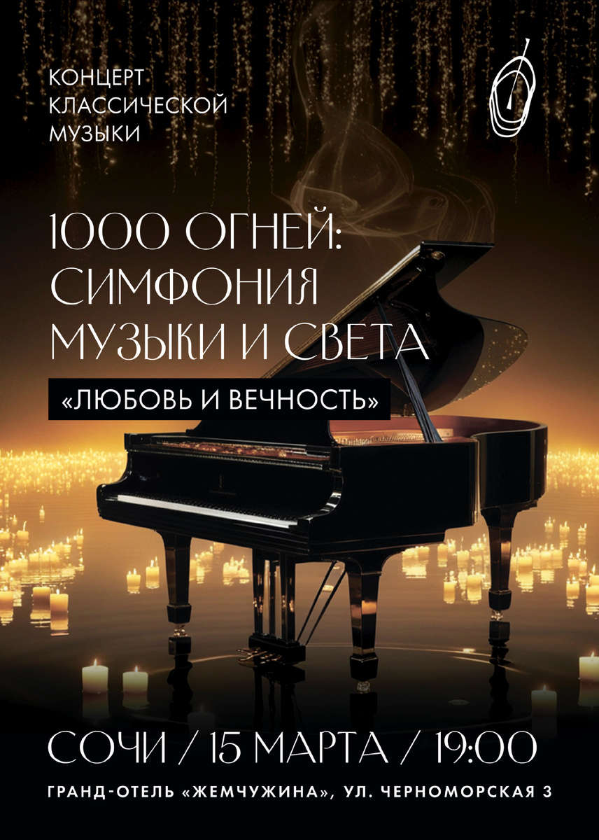 Зима, кажется, тянется бесконечно. Серые будни, короткий световой день, холод… Но не стоит отчаиваться! Ведь совсем скоро на порог постучится весна, наполняя мир яркими красками, теплом и предвкушением чего-то нового. И чтобы встретить это прекрасное время года во всеоружии, полными сил и энергии, пора уже сейчас позаботиться о своем настроении! Вот несколько простых, но действенных способов, которые помогут вам прогнать зимнюю хандру и настроиться на позитивный лад: 1. Добавьте красок в свою жизнь: 2. Подружитесь с солнечным светом: 3. Займитесь творчеством: 4. Побалуйте себя приятными мелочами: 5. Забота о теле и духе: И, конечно, одним из лучших способов зарядиться позитивом и вдохновением станет посещение яркого и запоминающегося события! 15 марта в 19:00 в отеле “Жемчужина” в Сочи пройдет концерт “1000 свечей: Симфония музыки и света”. Погрузитесь в волшебную атмосферу, сотканную из мерцания тысячи свечей и чарующих мелодий, посвященных вечной теме любви! Подарите себе вечер, напо
