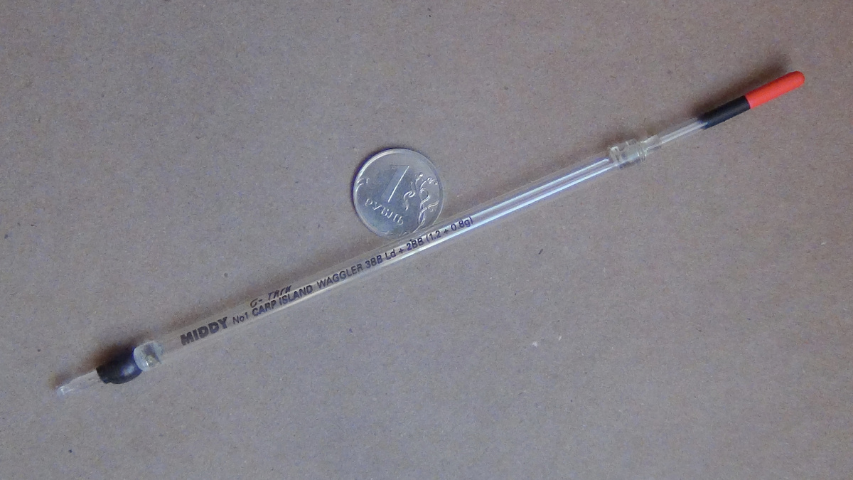 Middy Carp Island Waggler — ваглер с тонким пластиковым телом, сменной пластиковой антенной и сменной внутренней огрузкой. Предназначен для стоячей воды. Carp Island Waggler в переводе означает что-то типа ваглера для ловли карпа на острове. На официальном сайте Middy про поплавок Carp Island Waggler ничего нет. Там вообще нет поплавков в каталоге. И это правильно. Не умеет Middy делать хорошие поплавки. Как и хорошие катушки. Не люблю я Middy. В наших магазинах этот поплавок тоже проблематично найти. Но бывает всякое. Всего в линейке 3 модели с внутренними огрузками 0,8, 1,6 и 2,4 гр. Дополнительно на леске все модели требуют 0,8 гр. Форма — перо. Длинное и тонкое. Материал — прозрачный пластик. Лачить, очевидно, не надо. Трёхцветная, относительно короткая и сменная. Но сменная условно, поскольку даже когда я этот поплавок покупал, отдельных антенн в продаже не было. Крепление антенны — очень так себе. Где-то через месяц отвалилась. Пришлось приклеивать намертво. Но поскольку сменных