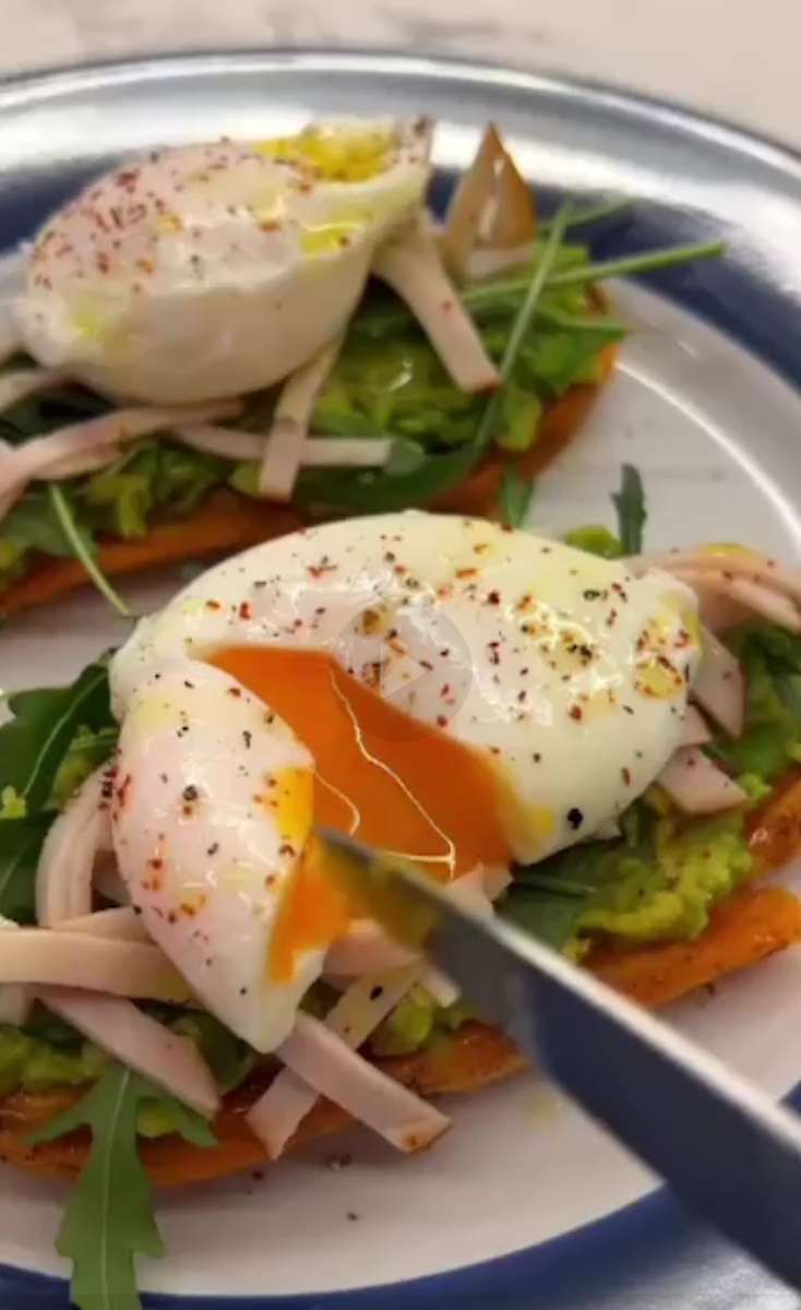Сегодня расскажу, как приготовить простой и вкусный Сэндвич на основе батата Ингредиенты: • батат • авокадо • яйцо • руккола • филе индейки • соль/перец • оливковое масло 1. Для начала очистим батат, поделили его пополам 2. Скажем маслом, солим и перчим, добавим сухой чеснок и выкладываем в форму для запекания, ставим в духовку 3. Следующим шагом нужно приготовить яйцо пашот Как это сделать правильно, можете посмотреть на моей стене 4. Чистим авокадо, мелко нарезаем, Превращаем в "пюре", добавляем лимонный сок, соль, перец. 5. Достаем батат, немного приминаем, придавая ему форму 6. Выкладываем ингридиентына батат Пюре из авокадо Руккола Индейка, нарезанная соломкой Яйцо пашот 7. Финальным шагом перчим яйцо на нашем сэндвиче, поливаем оливковым маслом И теперь у вас на столе готовое ресторанное блюдо! Приятного аппетита!)