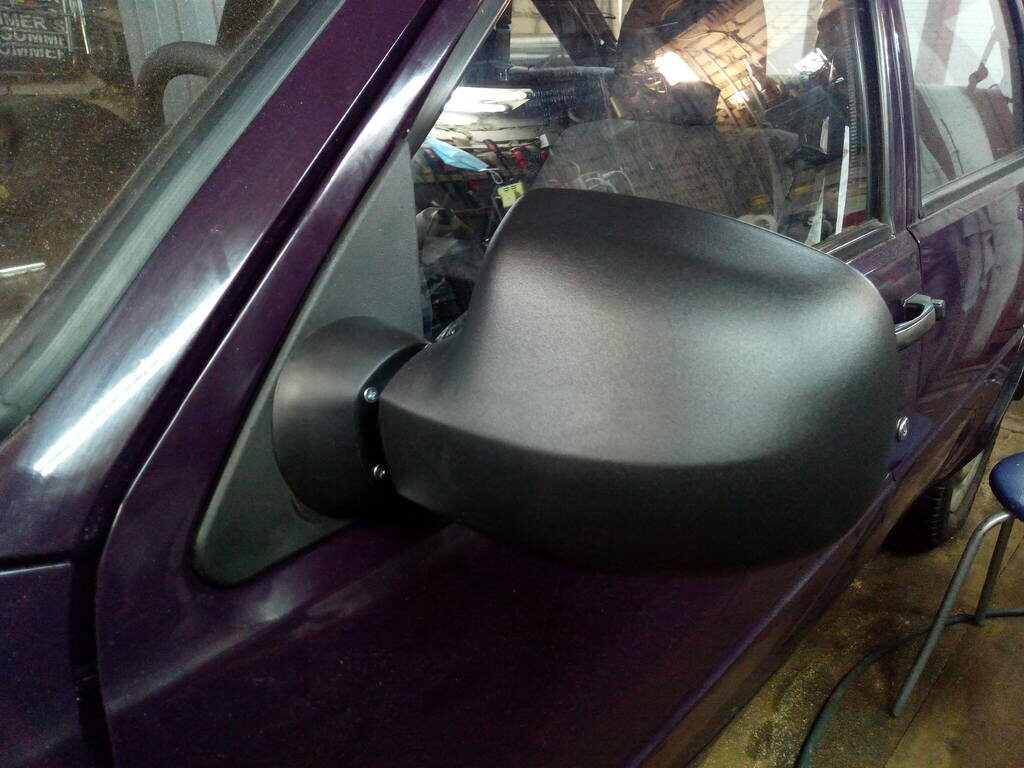 В итоге эта задача была решена с использованием штатных треугольных «подошв» от родных зеркал Оды и зеркал с электрорегулировкой от Renault Logan/Duster.