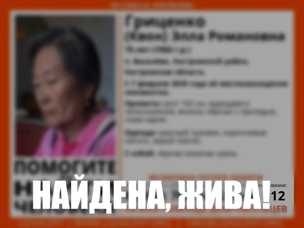 Элла Романовна более суток числилась пропавшей без вести В Костроме добровольцы поисково-спасательного отряда поделились подробностями поиска 75-летней Эллы Романовны Гриценко. Пенсионерка пропала 7 февраля и более суток не выходила на связь. В тот день пожилая женщина вышла из своего дома в посёлке Василёво, чтобы поехать к сестре в Кострому. Сын пенсионерки к назначенному времени отправился её встречать на автобусную остановку в областной столице. Однако в назначенное время мама так и не появилась. Тогда родственник решил, что пенсионерка поехала на следующем автобусе. Но и в этот раз транспорт не высадил родственницу. Тогда мужчина и забил тревогу, позвонив в полицию и поисковикам. Первым делом добровольцы стали узнавать, садилась ли вобще женщина на автобус. За помощью они обратились к сотрудникам железнодорожного вокзала, чтобы посмотреть записи с камер видеонаблюдения. К сожалению, результата это не дало. Тогда добровольцы непосредственно с сотрудниками полиции обратились за помо