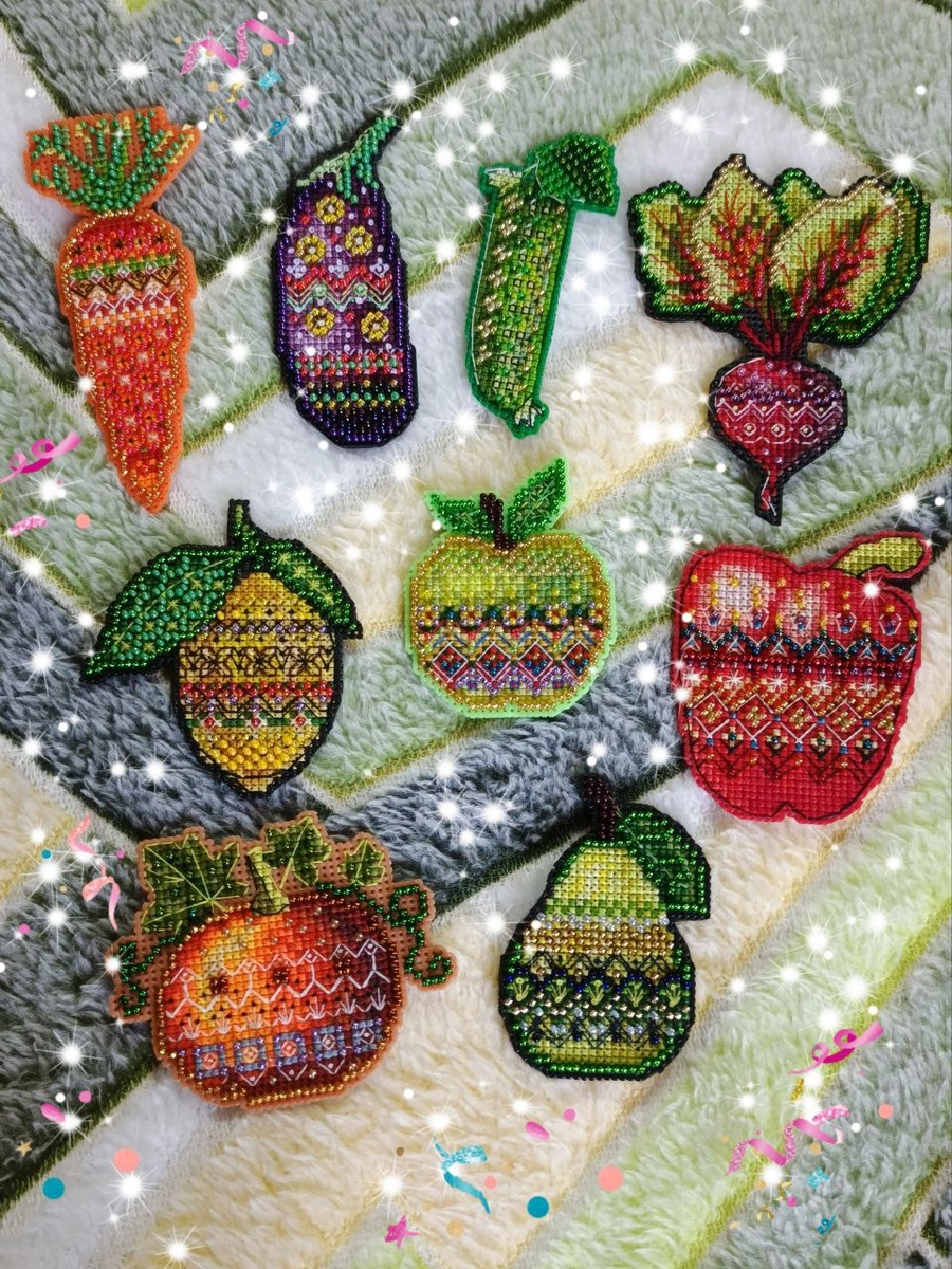 Это я вышивала фруктово-овощную серию от Юлии Сергеенко Столько бисера, столько блеска, столько красоты 😍 А посмотрите как сверкает ⚡⚡⚡ 🤩🤩🤩 А теперь немного деталек К фотографии Инжира я подошла со всей ответственностью 😄 сбегала с утра за инжиром, и добавила немного бусин Ну тут свёкла просто бесподобна, какая шикарная у неё ботва 🤩 Вообще, если в дизайне есть бисер, то мне это надо 😄 очень люблю его, и пришивать, и то как он сверкает, ведь он так изменяет вид готовой работы