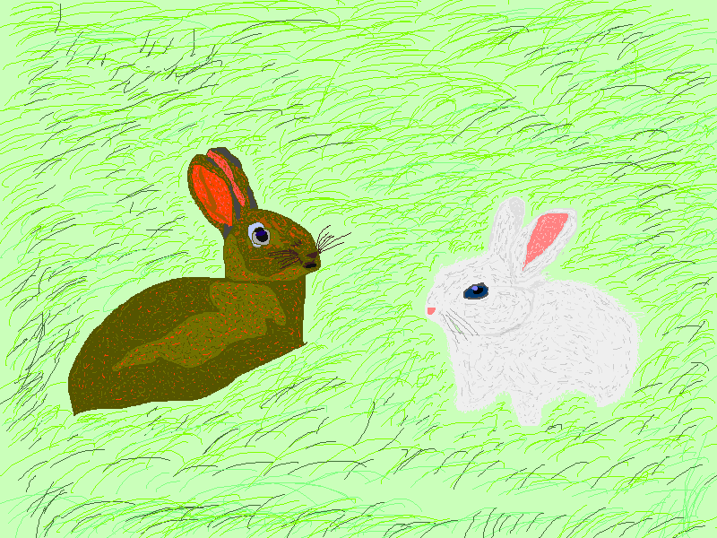Кролик идет по поляне. Пробирается через траву и идет в гости к своему другу - зайчику. Зайчик такой белоснежный. Он такого белого цвета. Не всегда сразу его и увидишь я в яркий солнечный день. Как сегодня. Кролик пробирается через траву. И, может немного покушать вкусной травки по дороге. Растет много всего интересного в поле. Каждая травинка интересна кролику. А, кое-что, тут, даже, и вкусное по дороге попадается. Вот, кролик, уже, оказался на холме. И тут смотрит - а вот и его друг зайчик. Зайчик его тут, уже, ждет. Оказывается, зайчик помнит, что кролик придет сегодня к нему в гости. И вышел пораньше. На поле. Чтобы встретить кролика. Залез на холм и смотрит. А где тут кролик. Вот он кролик! Идет такой серый. По траве. Пробирается с одного холма на другой. Идет по полю. На поле, как раз, яркий и светлый день. Очень теплый летний день. Все поле заполнено звуками. Тут и кузнечики и жуки. И бабочки летают. Все по своим делам. Вот и кролик дошел до зайчика. Своего друга. Теперь, они мо