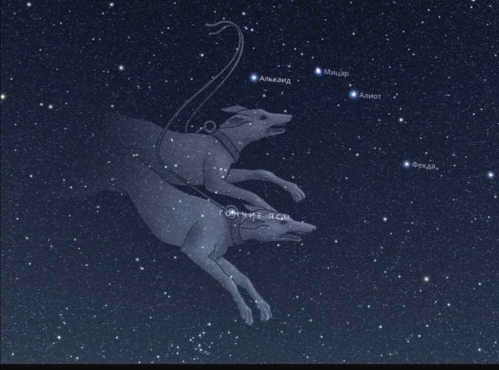 Созвездие Гончие Псы расположено на небе от 27 до 52 градусов северной широты. Это означает, что на широте 90-27=63 градуса созвездие не заходит за горизонт.