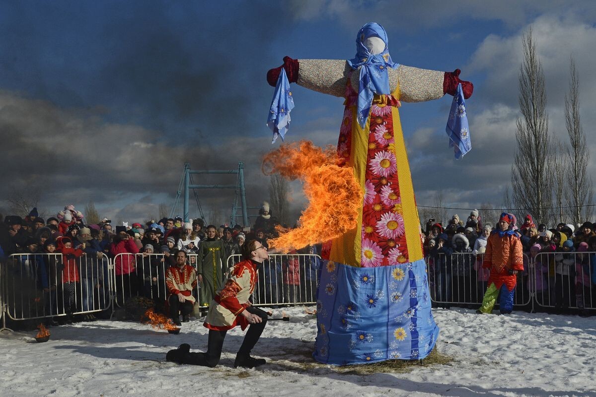 Под конец гулянья собирается люд честной, чтоб проводить зиму в путь-дорогу дальнюю. С почетом, с песнями да плясками поджигают чучело, а огонь тот, жаркий да веселый, прочь уносит стужу и холод. Говорят старики, что чем ярче огонь, тем теплее и радостнее будет весна!