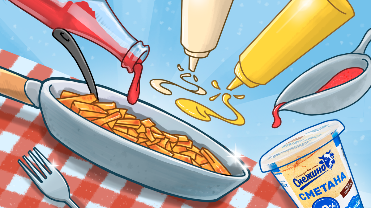 Жареная картошка — это любовь. Хрустящая, румяная, ароматная — можно есть просто так, но с правильным соусом она раскрывается ещё ярче. Если вам надоели банальные кетчуп и майонез, ловите пять вкусных соусов, которые сделают картошку ещё аппетитнее. Мы знаем, что вы приготовите сегодня на ужин! ;) Берём: - 100 г сметаны (например, бренда «Снежино» – густая, нежная, идеально подходит для соусов); - 2-3 зубчика чеснока; - пучок укропа; - соль, перец по вкусу. Чеснок трём или выдавливаем через пресс, рубим укроп, всё смешиваем со сметаной и приправляем. Соус готов! Он лёгкий, а чесночный аромат идеально сочетается с картошкой. Нужно: - 150 мл томатного соуса или густого сока; - 1 ч.л. острого соуса (например, табаско); - ½ ч.л. сахара; - ½ ч.л. уксуса; - соль, перец по вкусу. Всё перемешиваем и даём настояться минут 10. Получается пряный, насыщенный вкус с приятной кислинкой и остротой. Берём: - 2 ст.л. мёда; - 1 ст.л. зерновой горчицы; - 1 ст.л. обычной горчицы; - 1 ч.л. лимонного сока.