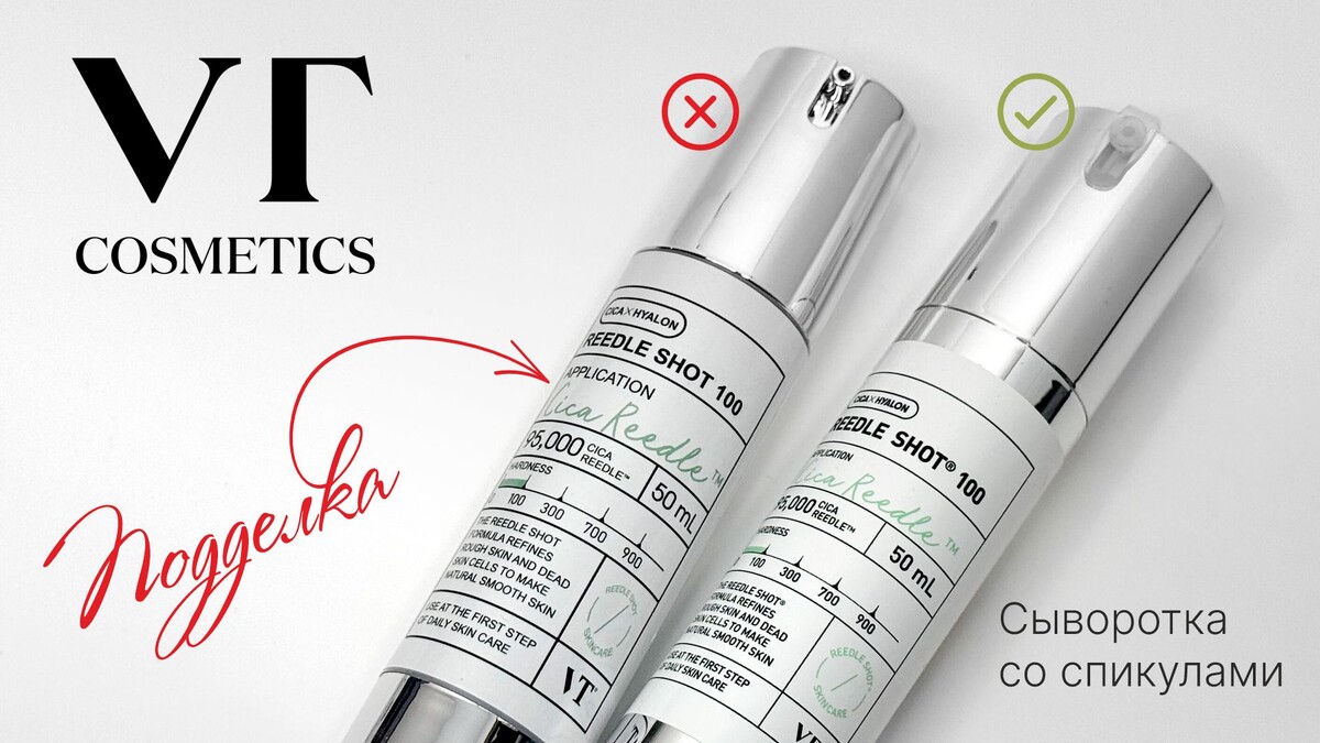 Сравнение оригинала и подделки на сыворотку с микроиглами VT Cosmetics Reedle Shot 100 50 мл