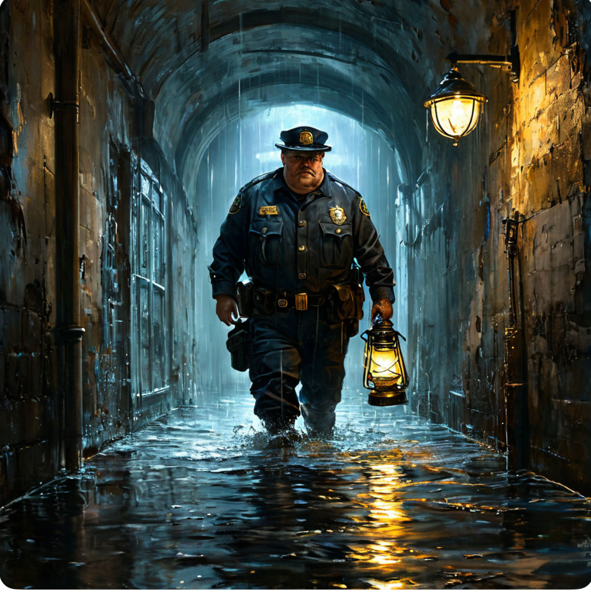 -Они все мертвецы, понимаете?! Все с кем я здесь встречался, мертвые давно! Ну может кроме парня с телевизором, его я не знаю,- Саня волнуясь загребал по воде, поспевая за полицейским идущим вглубь подвала,- перед тем как всё рвануло, в эту дверь моя жена забежала, понимаете?! Воды уже выше колена, подвал явно затапливает, нам срочно нужно её найти! -Жена?- удивился полицейский и остановился Саня налетел на его спину и чертыхнулся -Какая ещё жена?- спросил служитель порядка -Ну какая, обычная,- растерялся Саня,- Татьяна Ивановна Сорокина, среднего роста, тридцать пять лет, глаза голубые, характер скверный -Причем здесь жена? Что вы мне голову морочите, гражданин?!- рассердился полицейский,- нет здесь никаких жен голубоглазых ни со скверным характером ни с ангельским! Здесь вообще жён нет! Вы хоть понимаете где вы находитесь?! -Конечно понимаю! В подвале, на улице Свердлова 37 город Архангельск . Мы с женой здесь фуру разгружали, людей то не хватает, вот мы по ночам и … -Какого Свердл