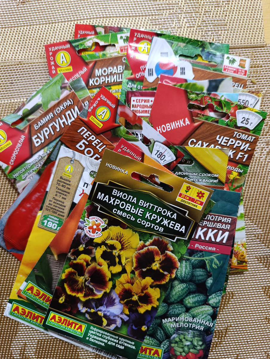 Добрый день всем! Посевной процесс набирает обороты. Сегодня получила с маркетплейса семена. Второй год покупаю у своего проверенного продавца. Очень удобно, сидишь спокойно дома и выбираешь. Да и разнообразия больше, чем в наших местных магазинах. Немного дороже, чем в магазинах, но некоторые семена продаются комплектами по несколько пакетиков, так выходит дешевле. Мы скооперировались с родственницей, а потом поделили. Вот мои сегодняшние приобретения . Хочу показать, что интересного прикупила. Китайские огурцы сажала, захотелось Корейских и Моравских. Пекинскую капусту я сажаю в теплицу ранней весной, не всегда она удается, попробую Японскую. Цветную капусту вообще ни разу не сажала. Без зелени не обойтись. А без экзотической зелени? Шпинат сажала, землянику тоже, а вот про Земляничный шпинат не слышала. В описании сказано, что неприхотливое, хладостойкое растение. Ранней весной даёт зелень, а с июля ароматные ягоды. Их используют в свежем виде, варят компоты и джемы. Лидер по сод