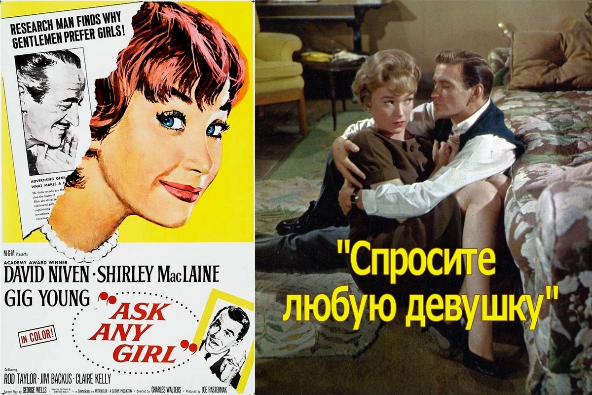 В июне 1958 года студия Metro Goldwyn Mayer покупает права на роман еще до его публикации у Уинифреда Вулфа и начинает кастинг актеров в один из самых очаровательных фильмов, который уже в следующем году получил премию BAFTA за лучшую актрису и Серебряного медведя за лучшую женскую роль. Да, фильму в этом году 67 лет и да, я в своем уме))) Просто он чудесный и однозначно стоит просмотра)) По взятым наградам и названию фильма внимательный читатель может предположить, что в центре событий в "Спросите любую девушку" некая дама). И будет прав). Мэг Уиллер приезжает в Нью-Йорк, чтобы - по официальной версии - найти себе работу. Но помимо официальной версии, конечно, есть версия завуалированная и тщательно скрываемая: Мэг хочет найти себе мужа, руководствуясь своими наивными представлениями о замужестве и соблюдая строгие моральные принципы. Мэг устраивается в фирму, специализирующуюся на маркетинговых исследованиях рынка продаж и возглавляемую двумя братьями Доутон – трудоголиком Майлзом и