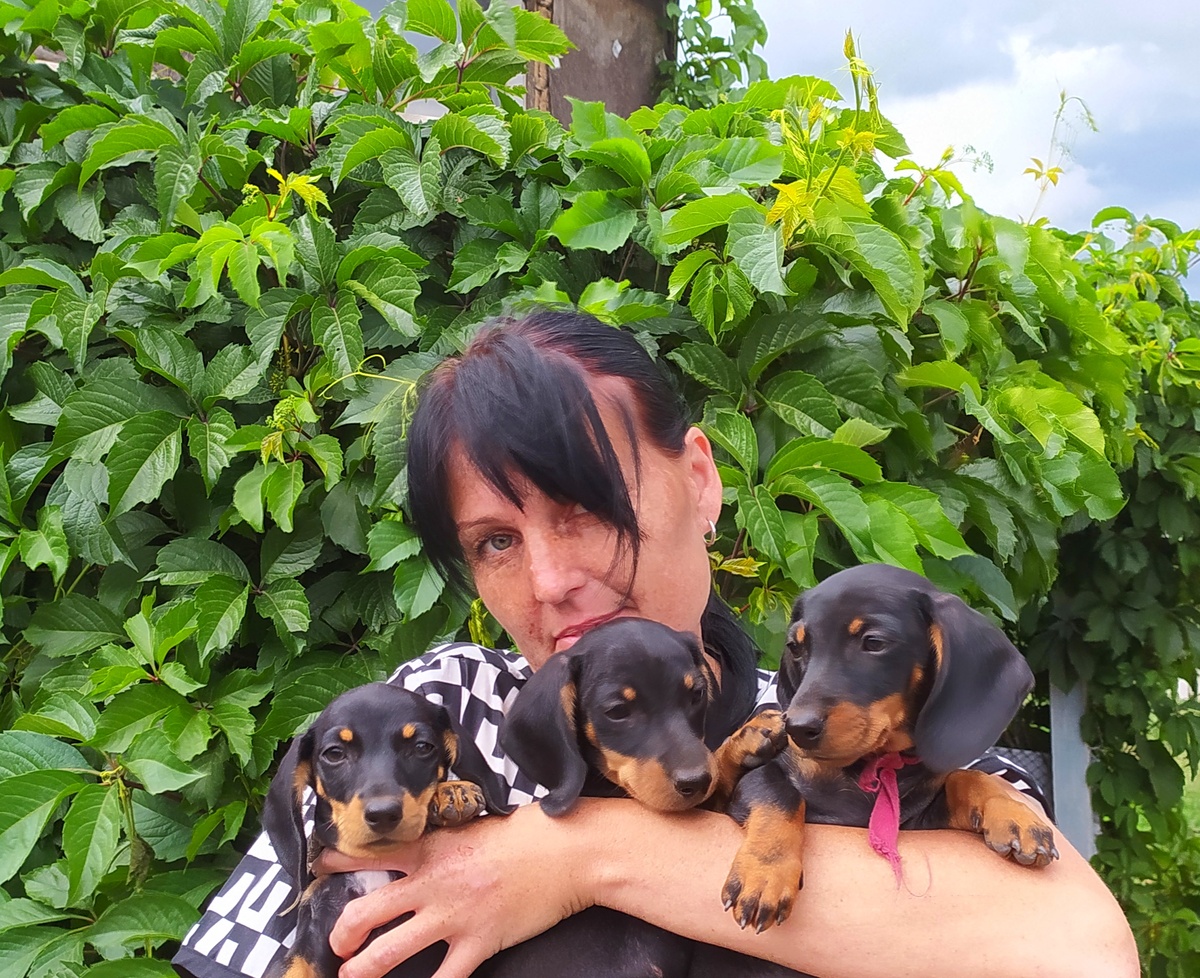 Наши первые щенки благополучно нашли свои дома и шлют время от времени приветики. Ника. Та идеальная пара ребёнок и щенок. Прям такса таска выросла. Умница и собака и хозяйки мама с дочей. Ведь благополучие собаки завит от терпения людей. Даяна. К сожалению много фото утеряно, но это не последние. Семья просто в восторге. Теперь её зовут Кира и это настоящий член семьи и компаньон, ходит рядом, умом собаки не перестают восхищаться. От Дария к сожалению приветов нет. Люди разные. Есть посвящают в свою жизнь, есть нет. Я конечно переживаю и попробую связаться с ними.