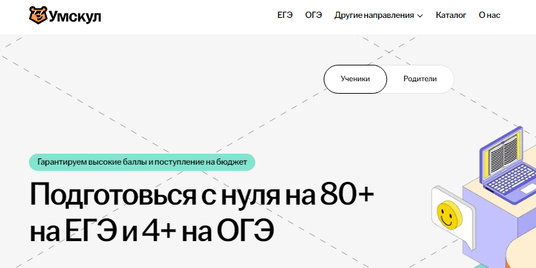 Скайсмарт один из лидеров среди образовательных площадок. Преподаватели помогают подготовиться к ЕГЭ и ОГЭ, подтянуть оценку по английскому, математике, физике, русскому языку, обществознанию. Онлайн-школа занимает 3 место в рейтинге крупнейших edTech-компаний России по версии РБК.