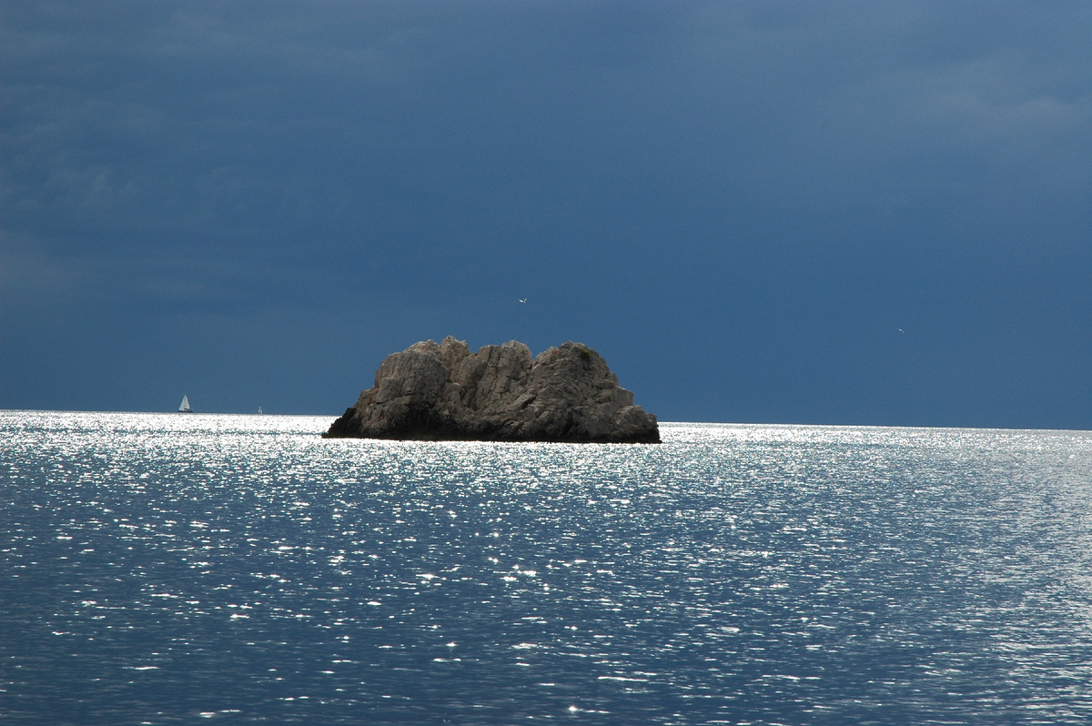 Они доплыли до островка, который был просто скалой, возвышающейся из воды. Ольга показала ему, куда плыть, и они доплыли до пологого выступа скалы , который как козырек омывался водой и на нем можно было передохнуть.