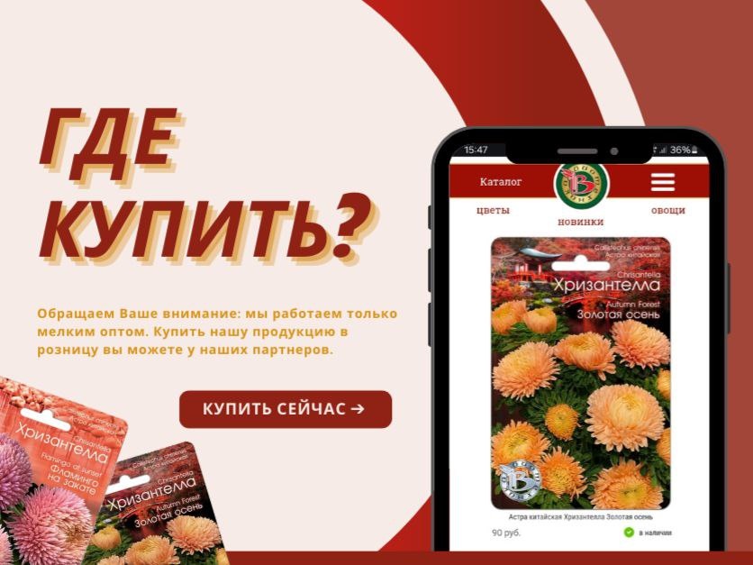 Самый полный ассортимент семян, официальный партнёр, осуществляется доставка по РФ, в Беларусь и Казахстан. Заказ от 500руб, доставка оплачивается отдельно. 4. Розничные магазины Вашего города.