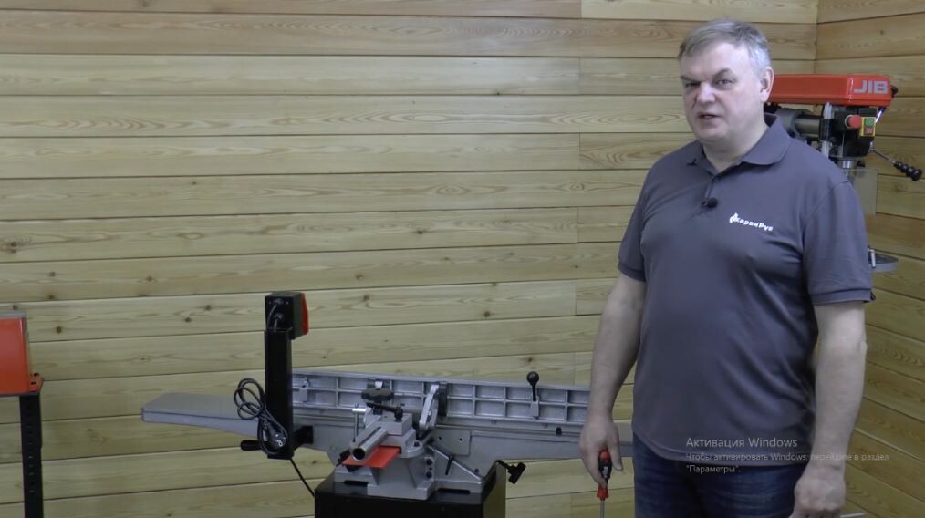 Добрый день! Сегодня мы на примере фуговального станка завода WARRIOR модели W0106FL расскажем, как заменить штатный режущий вал с прямыми ножами на спиральный сегментный Helical. Главное его преимущество — повышенная износостойкость режущих кромок. Чтобы заменить вал, нужно соблюдать определенную последовательность. Сначала мы демонтируем кронштейн пульта управления, далее — откроем подставку, снимем приводной ремень, раздвинем столы и открутим крепления бобышек вала. Для удобства работы перенесем станину станка на подставку: система бокового упора позволит ремонтировать его в сборе с кронштейном — достаточно открутить четыре винта крепления, два с одной стороны и два с другой. Настройки не собьются, и в дальнейшем вы сможете установить параллельный упор так же как он и стоял. Для демонтажа кронштейна пульта управления достаточно открутить два винта крепления. Чтобы получить доступ к двигателю и приводному ремню, снимаем заднюю крышку. Чтобы снять приводной ремень, необходимо ослабить
