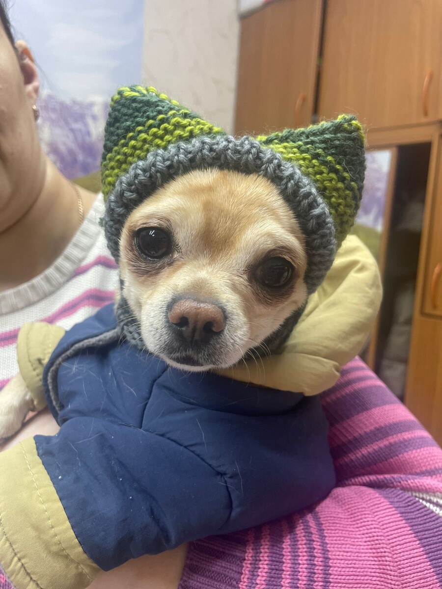 Тот момент когда хозяйке выбрать для себя шапку проще, чем для своего любимого питомца😀